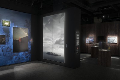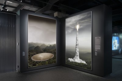 The artwork "liquid gravity" draws on a cosmonaut training session taken by Michael Najjar in December 2012 at Star City. The artist spent two hours under water in an original EVA spacesuit. The picture was taken at a depth of 12m and subsequently one element was digitally added - the Earth. The view of the Earth through the porthole dislocates the viewer’s perspective of space and questions the relationship between the real-world and fabricated reality.