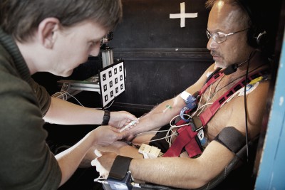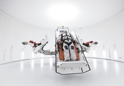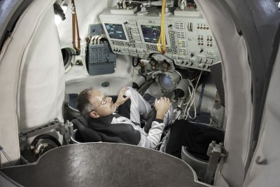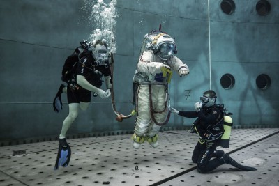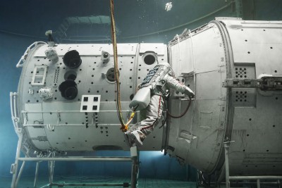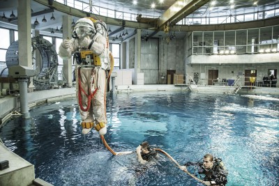 “liquid gravity” explores linkages between space, gravity, and the human body. A cosmonaut levitates above the ground in what seems at first sight to be an industrial environment. In fact it´s the world´s largest hydrolab at the Yuri Gagarin Cosmonaut Training Center in Star City, Russia. Known as “neutral buoyancy”, the principle of simulating weightlessness in a huge tank of water was first developed by Buzz Aldrin for the Gemini project in the early 1960s. Since then the hydrolab has been a vital part of training for all cosmonauts and astronauts.