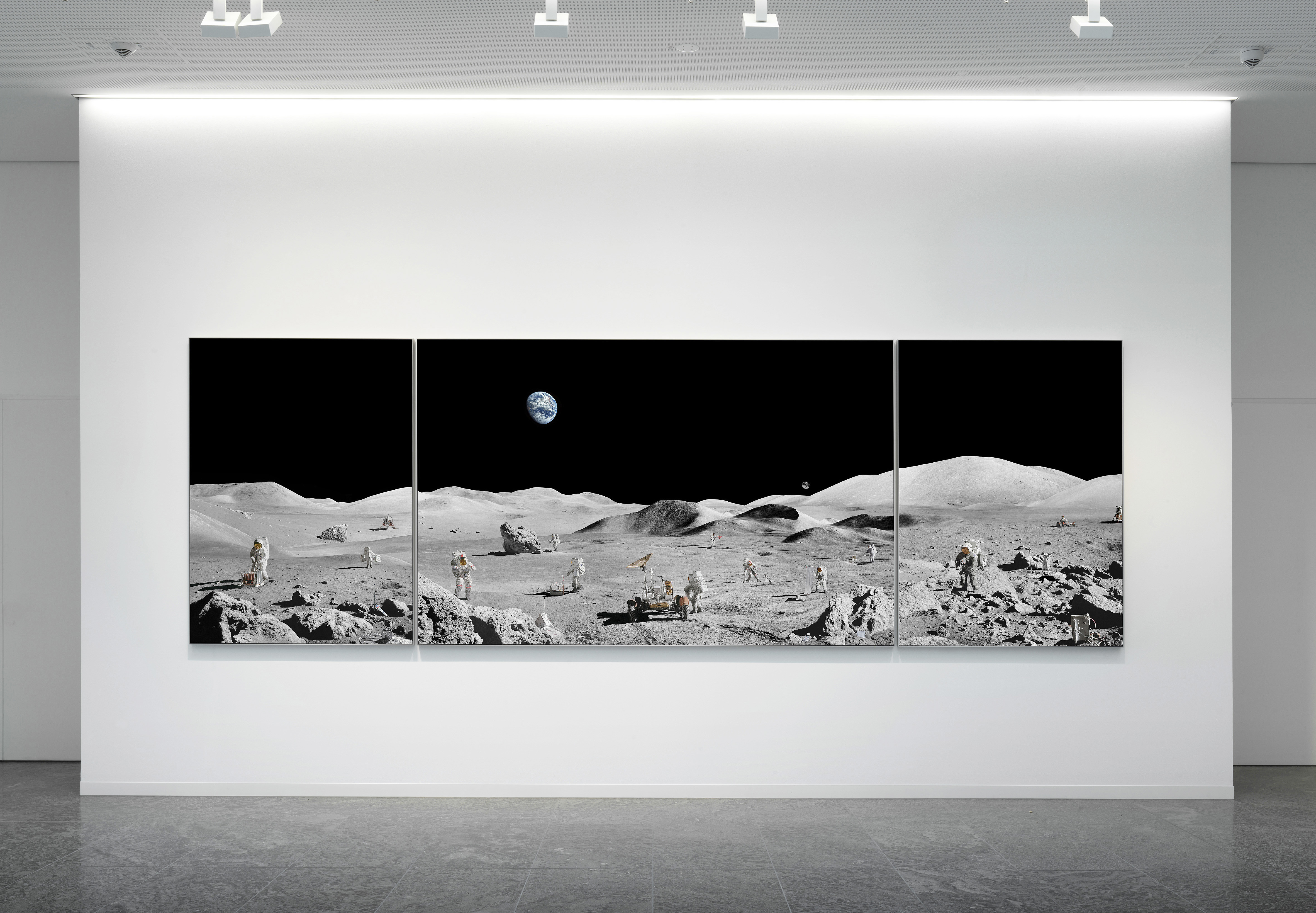 The work "lunar explorers" (2019) is a tribute to the twelve astronauts who walked on the Moon – the most significant explorers of the past century. During six NASA missions between 1969 and 1972, these twelve men landed, walked, drove, and worked on the lunar surface. Equipped with Hasselblad cameras, they took thousands of photographs, which serve as the source material for this work.