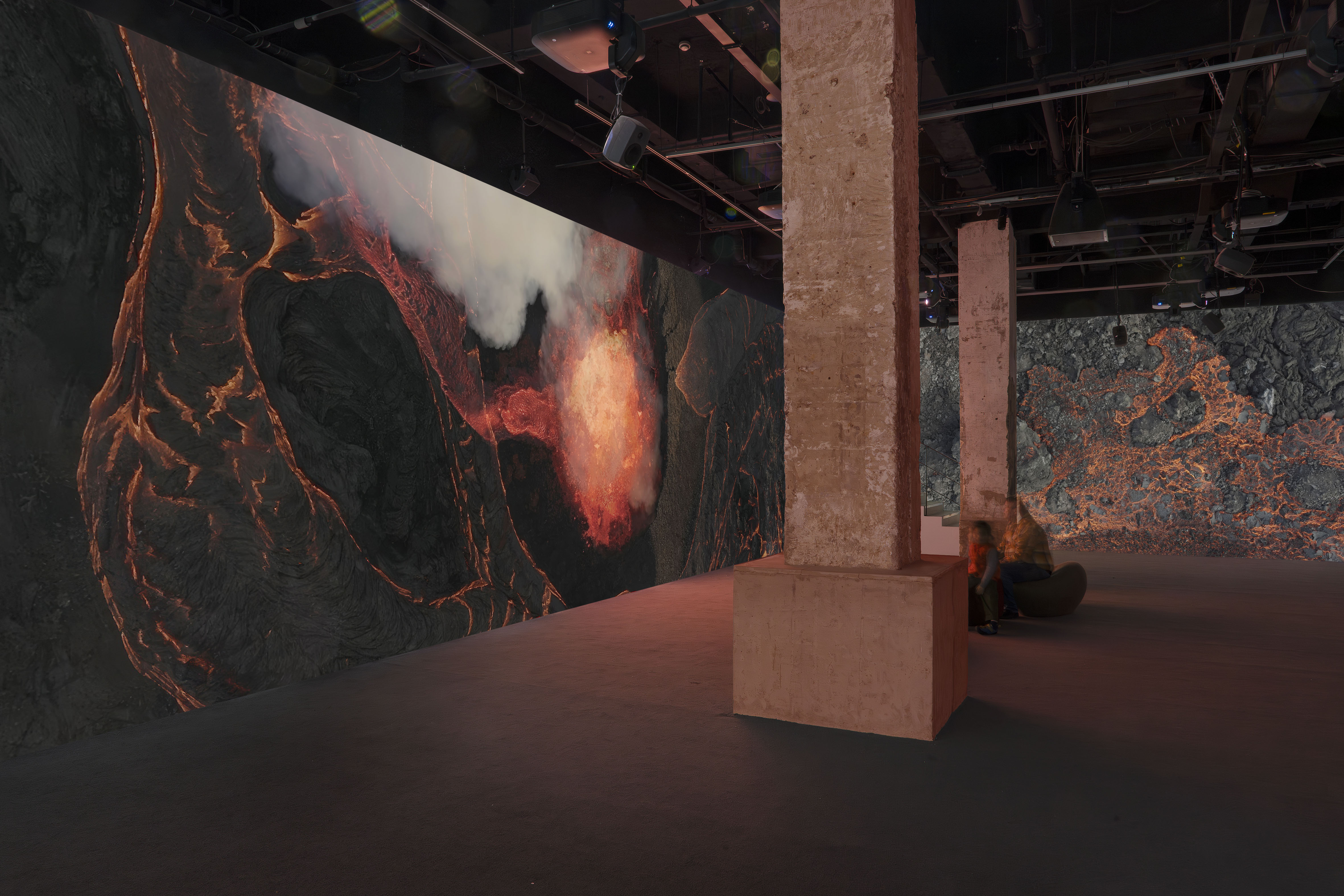 The exhibition features large scale videos from his "cool earth" series that engage with the process of transformation and reconfiguration of our world. Volcanic eruptions, tsunami waves, and Arctic ice worlds form the visual and metaphorical framework for the collapse of existing structures and the emergence of new worlds.